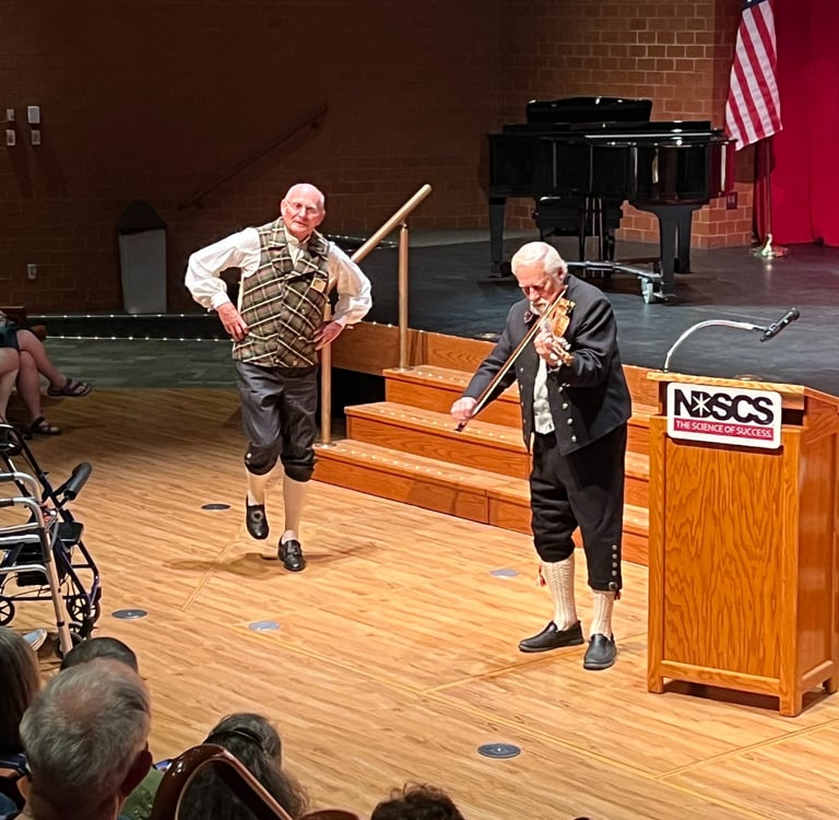 Bud had invited the audience to dance during his performance so when he played a schottische, I could not resist the opportunity. Bud’s wife joined me, and I had a great time dancing with her. Then Bud played a waltz, and I showed his wife a fairly easy pattern waltz that I had learned many years ago. Unfortunately, I made her a little dizzy and ended up apologizing to her the next morning at breakfast. If you ever get the chance to see Bud perform, I strongly recommend that you do! He is truly a master performer with, and maker of, the Hardanger fiddle.