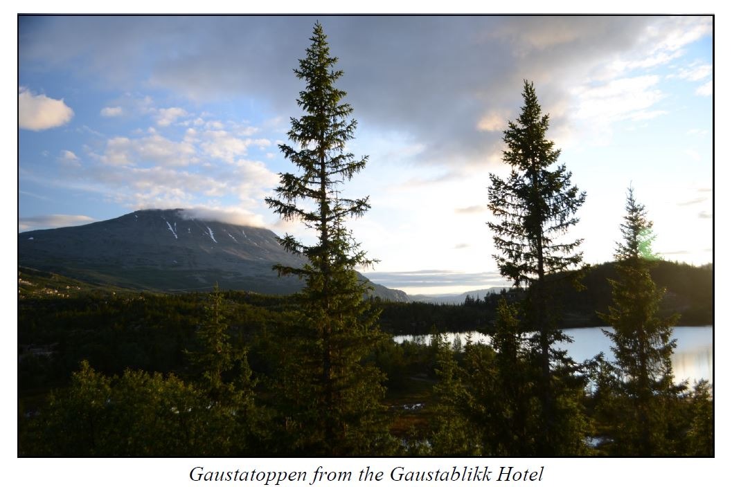 Our stay at the Gaustablikk Hotel provided us with fantastic views of Mount Gausta both at sunset and sunrise. Although none of us climbed Mount Gausta, twenty members of our group, both Norwegians and Americans, with guides Harald Omnes and Tone Jorunn Tveito, spent four days hiking in the mountains of northern Setesdal and northwestern Telemark. There will be more about this in the last section of this article. We left our hikers in Hovden and met up with them again in Oslo, but not before enjoying dinner together at the Hovden Hotel, where the hikers were all introduced and Harold and Tone in their bunader performed for us.
